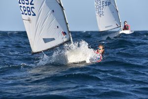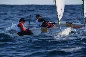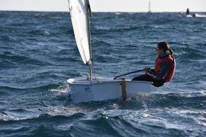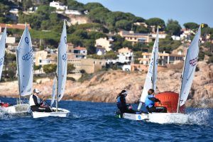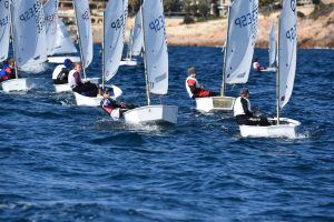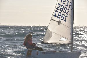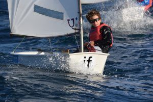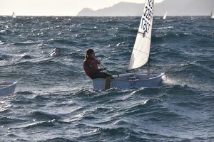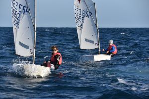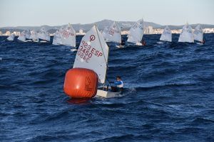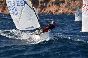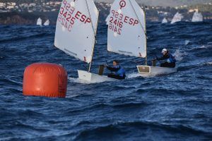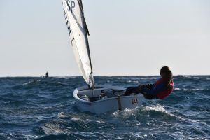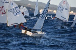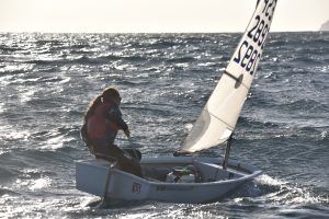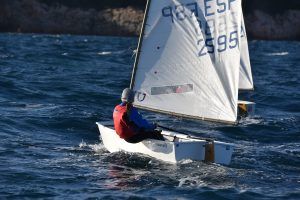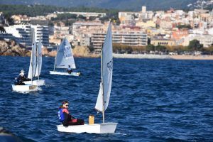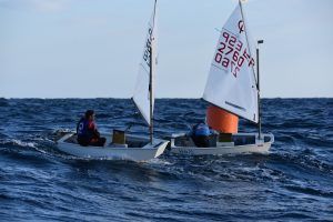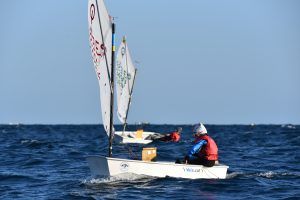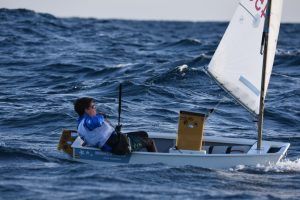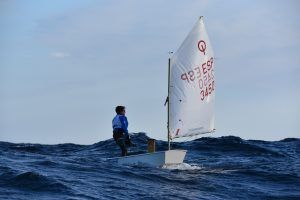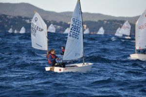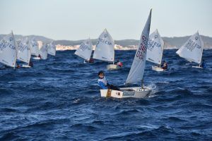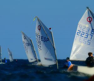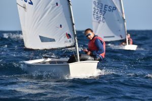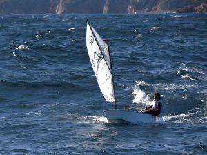 Com podeu veure a les fotos, l’Optimist es un petit vaixell portat per nens de 7 a 15 anys que té una llarga història (des de finals dels anys 50) i que es el vaixell d’iniciació per excel·lència a tot el Món. Els nens aprenen a navegar però si els hi agrada, poden aprendre a competir al seu club i després a altres clubs i fins i tot a altres països. Duran tot l’any es fan regates de diferents nivell, on els nens poden competir fins i tot amb nens d’altres països. L’esport de la vela es un esport molt complert, mental i físic i està demostrat que, apart de pasar s’ho bé navegant i fent amics, ajuda als nens a ser més independents, reforçar l’autoestima i a valorar l’esforç i el contacte amb la natura, ajudant nos una mica als pares a que dediquin menys temps a les pantalles. Es un esport individual però en les estones que es passen a port preparant el material o esperant que vingui el vent, es fan molt bons amics, amb interessos similars i que molt sovint son per tota la vida perquè l’afició al mar moltes vegades es converteix en un estil de vida.